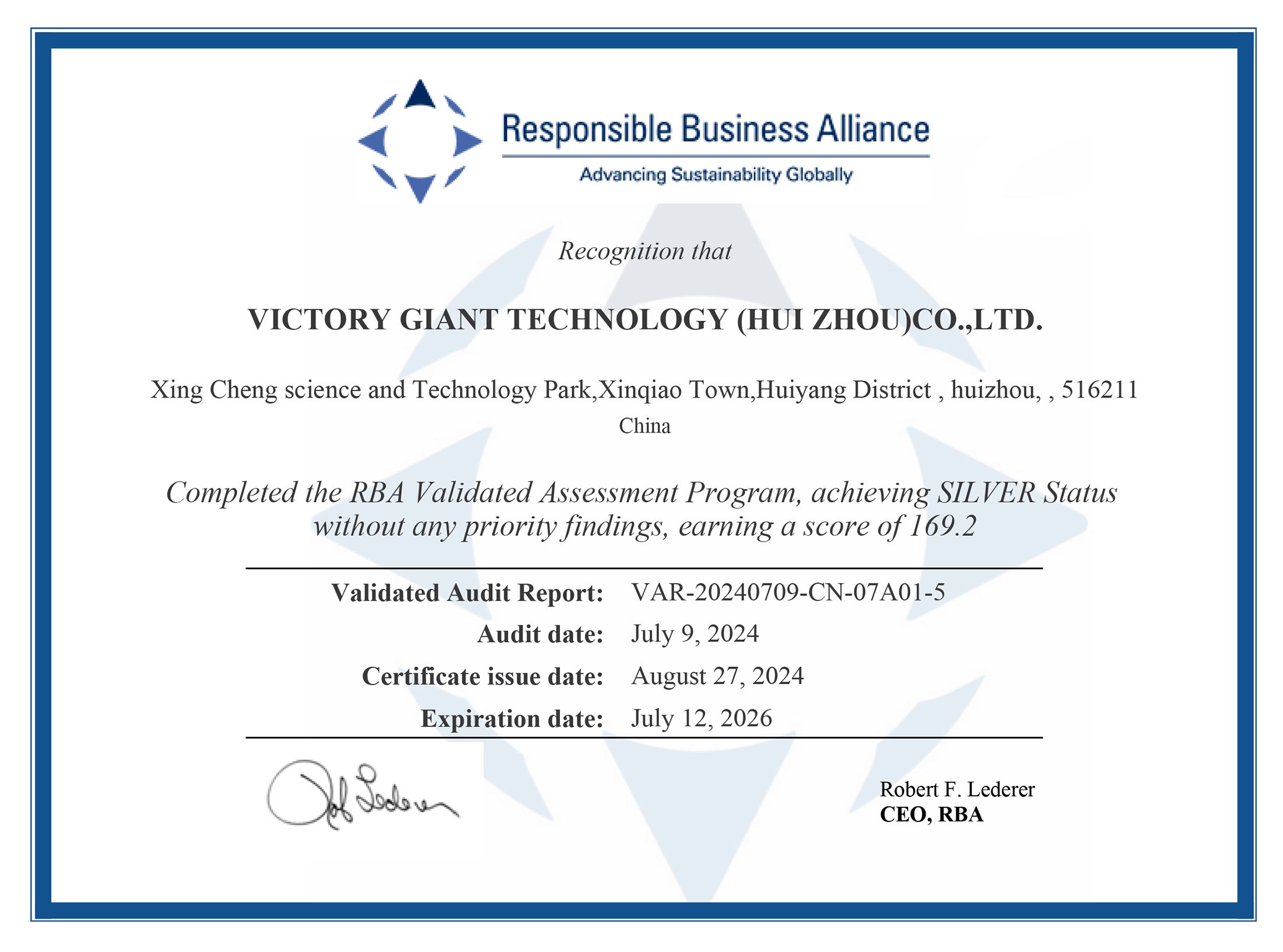 RBA VAP Social Accountability Audit Certification