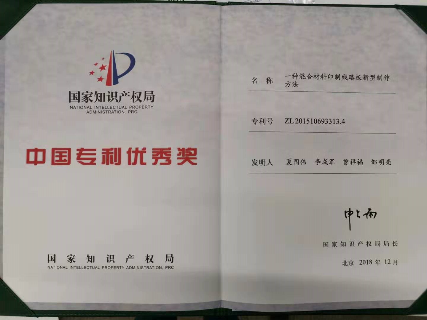 제22회 중국특허 우수상